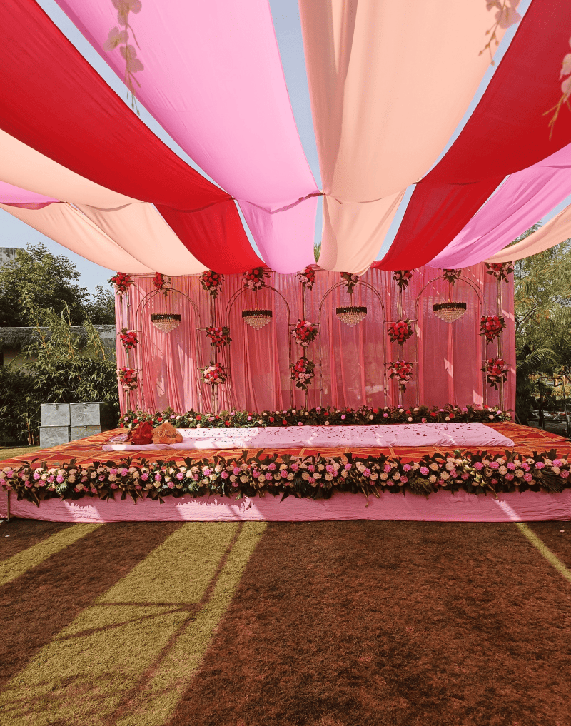 Soft drapes, floral accents, and a serene pastel palette create the perfect backdrop for intimate ceremonies. Designed to bring grace and charm to your celebration moments.