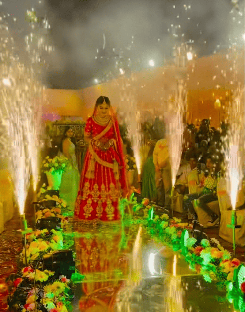 A spectacular pathway, floral details, and sparkling effects create a regal entry moment. Crafted to make every bride shine.